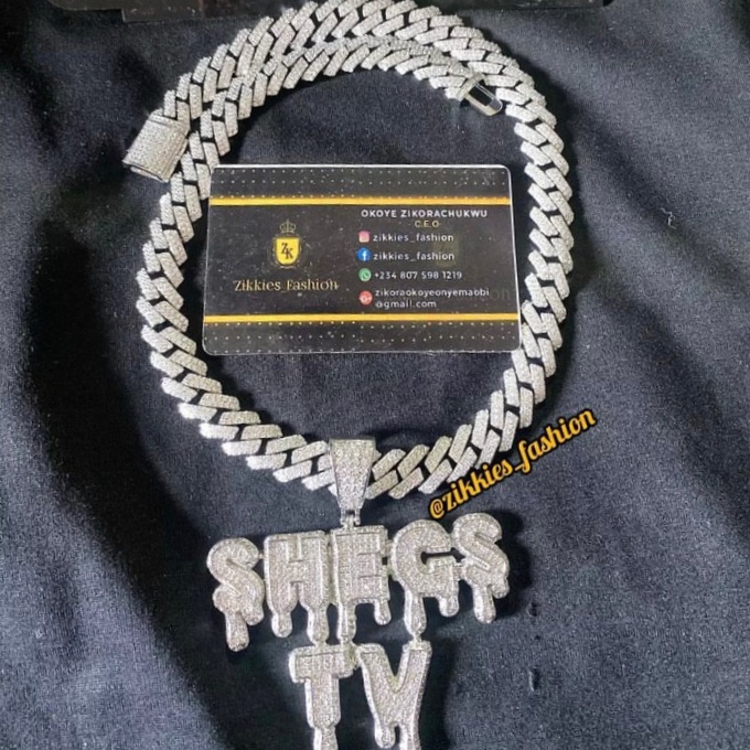 Here at zikkies fashion we customize your names on quality and luxurious jewelries like : luxury bar pendants, necklaces, cufflinks, leg chains e.t.c to make you look noteworthy and magnetizing . Shop With Us Now.